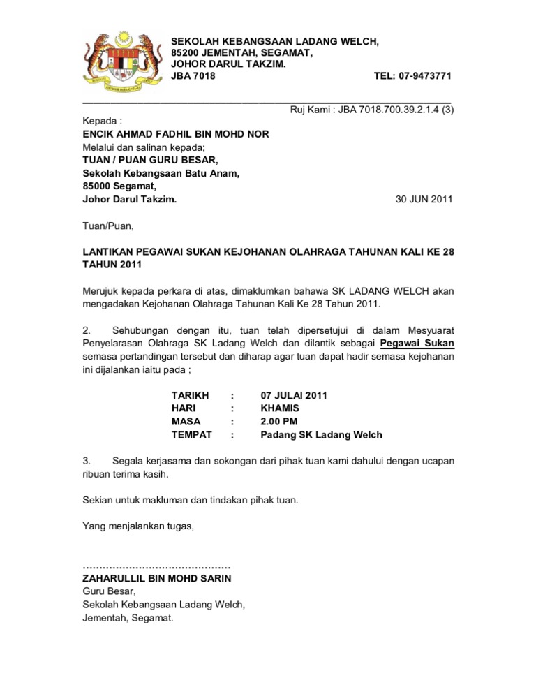 Surat Jemputan Pegawai Sukan 1 Pdf